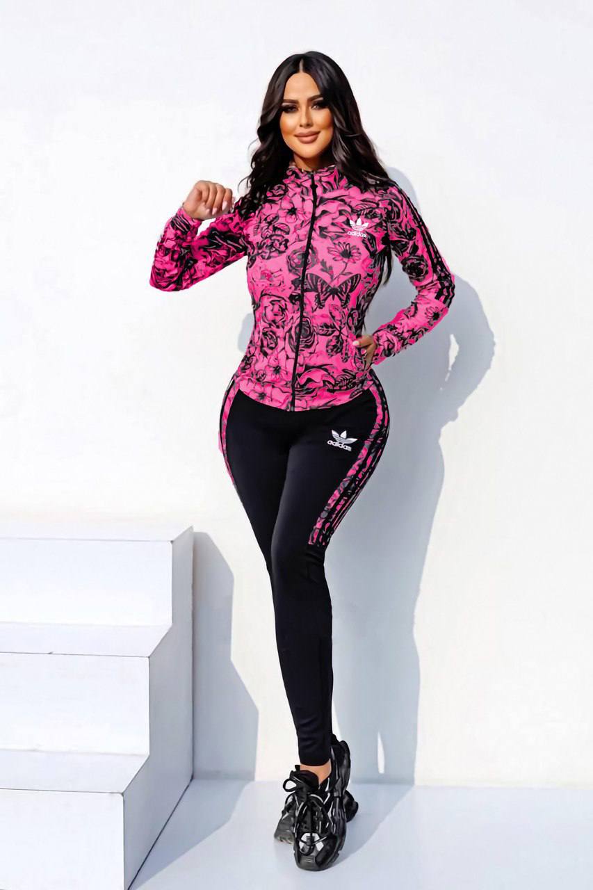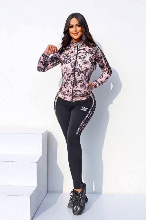 طقم رياضي نسائي 3 قطع ماركة اديداس مطرز بأشكال الورود الزاهية، وبالألوانه المثيرة التي تعطيكي ثقة في النفس | أحصلي عليه فورا من متجر إليسار فاشون في عمان.