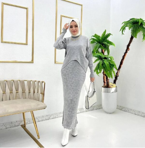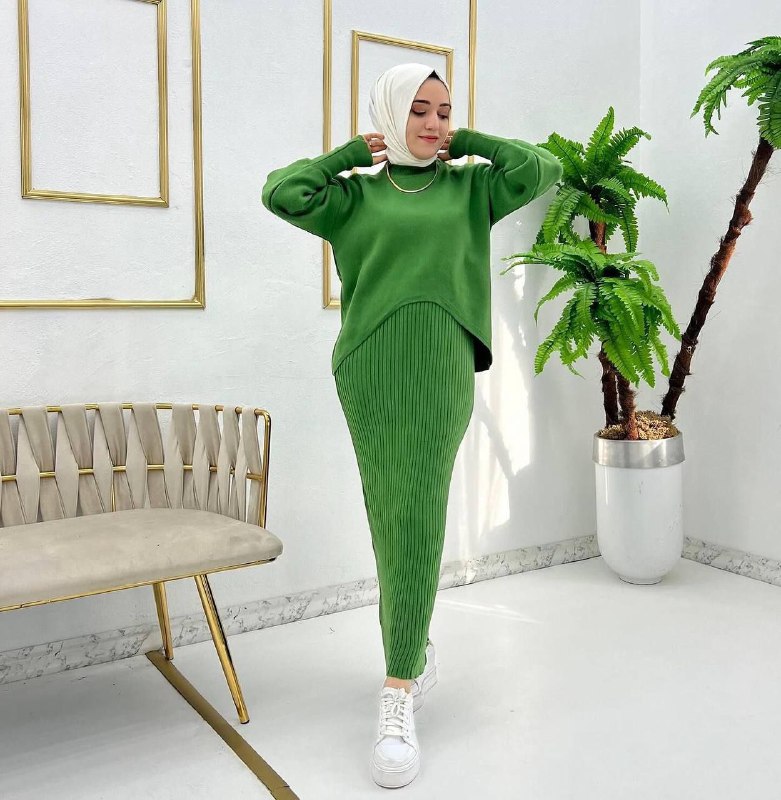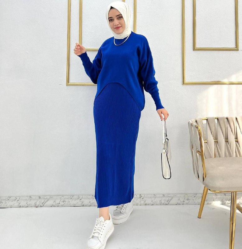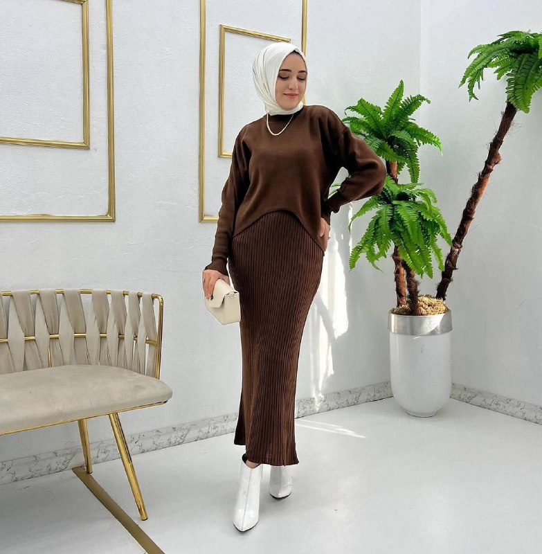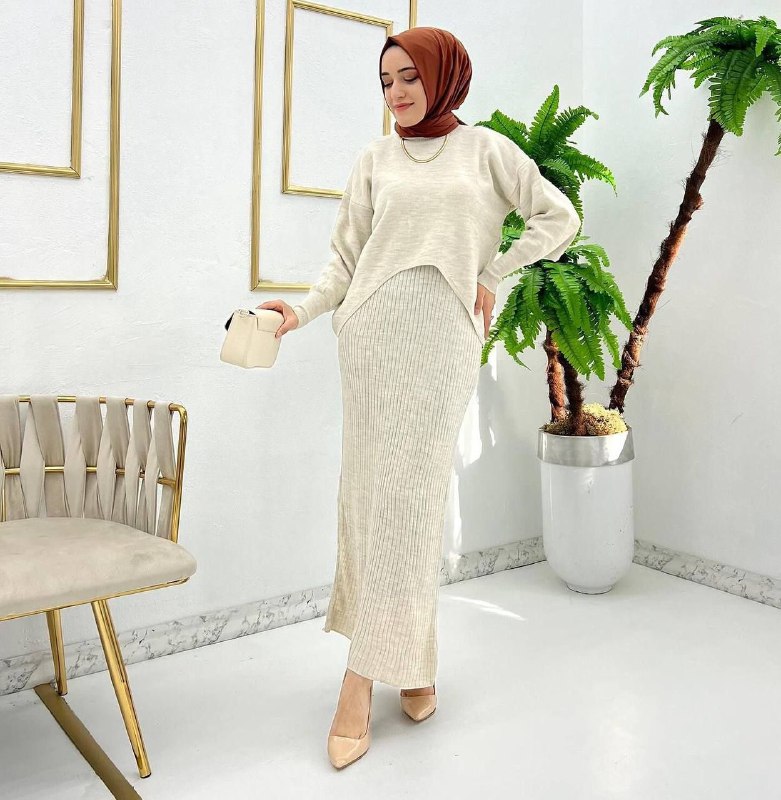 طقم للمحجبات مودرن من قطعتين بلوفر وجيبة يعطي مظهر راقي وفخم بمجموعة من الألوان الساحرة التي تناسب كل المناسبات | تسوقي في متجرك المفضل إليسار فاشون
