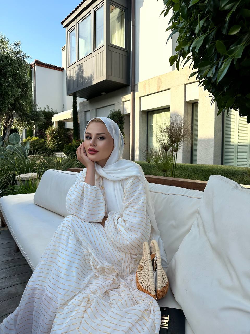 إضافة إلى السلةفستان تركي للمحجبات باللون الأبيض